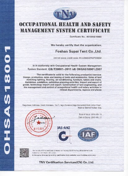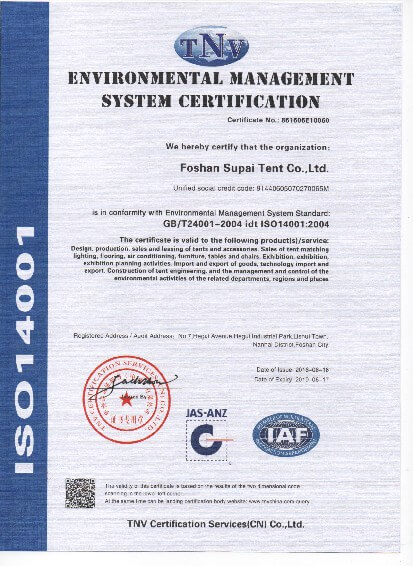 我司嚴(yán)格執(zhí)行ISO9001的質(zhì)量管理體系,確保不良產(chǎn)品的最小化及客戶滿意度的最大化。我們的的主要產(chǎn)品包括可移動(dòng)的模塊化鋁合金支架篷房,有不同風(fēng)格的篷房及裝飾可供選擇,篷房跨度從3米到60米。此外,還包括錐頂篷房和吊頂篷房,以及篷房配件,如照明燈具、地板、空調(diào)、桌椅及其它用于篷房?jī)?nèi)部的家具。篷房可廣泛應(yīng)用于大小型活動(dòng)、婚慶、展會(huì)、體育、酒店、航空和工業(yè)等其它領(lǐng)域。篷房框架結(jié)構(gòu)為高強(qiáng)度鋁合金6061/T6型材,篷布為防水、阻燃的雙面PVC涂層聚酯纖維布,主體結(jié)構(gòu)風(fēng)載荷不少于100Km/h。