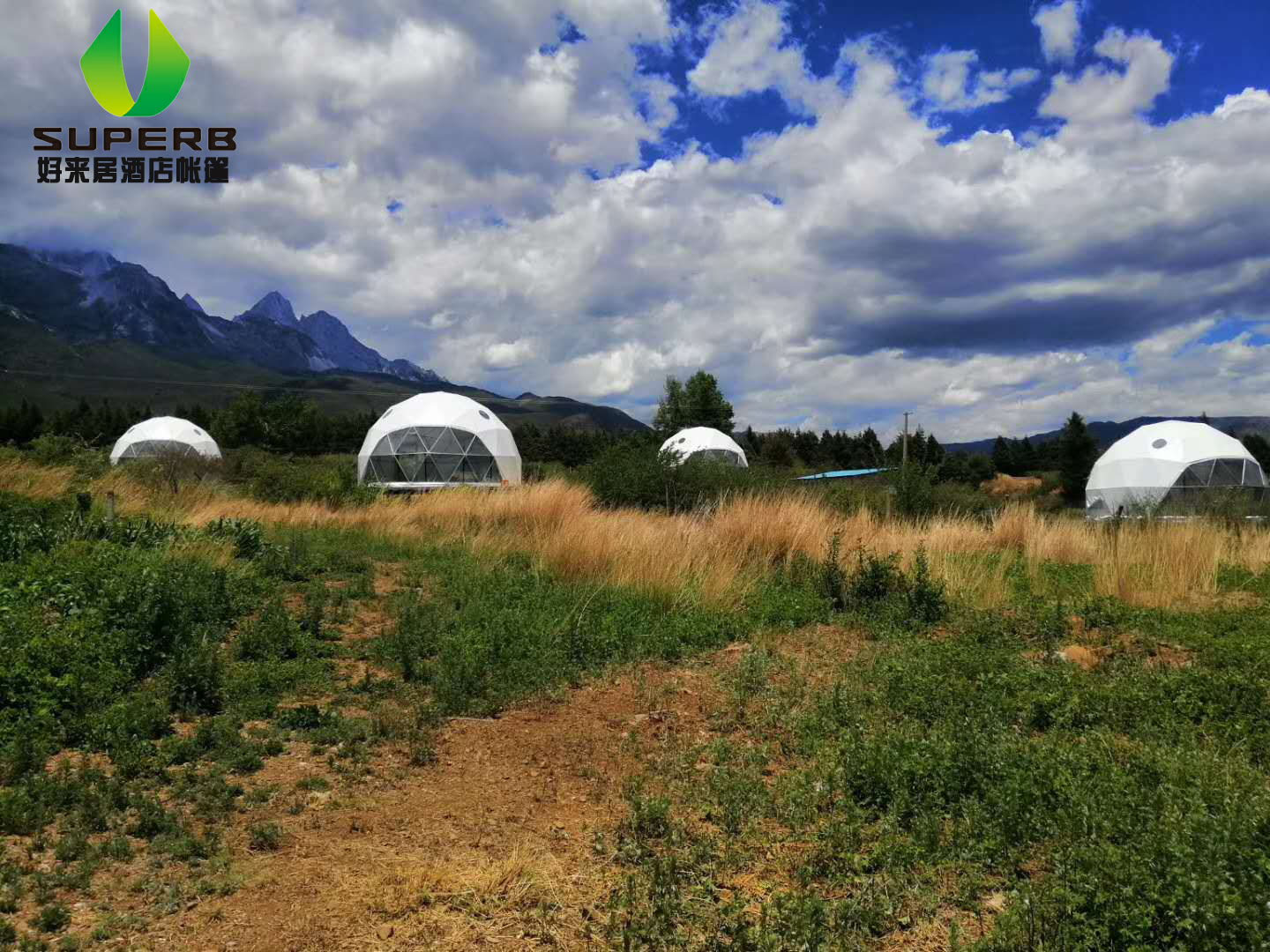 好來居球形篷房采用的是球面網殼架構, 網殼是一種曲面型空間網格結構,兼具網架結構和薄殼結構的特點,用材省,但受力性能相當好,安全系數極高,而且外形美觀、富于變化。曾被譽為“空間強,重量輕,有效果的設計” !球形篷房更具安全性、實用性和經濟效益,結構穩固、可抗風雪防震、抗風能力可達120km/hr,安全性完全可以抵御自然災害,而且還有多種規格可供選擇。