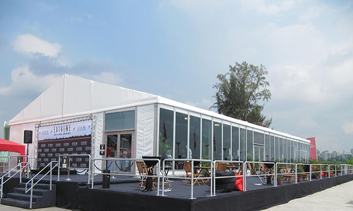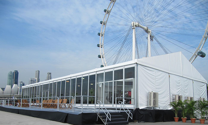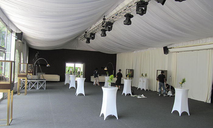 我司嚴格執(zhí)行ISO9001的質(zhì)量管理體系,確保不良產(chǎn)品的最小化及客戶滿意度的最大化。我們的的主要產(chǎn)品包括可移動的模塊化鋁合金支架篷房,有不同風格的篷房及裝飾可供選擇,篷房跨度從3米到60米。此外,還包括錐頂篷房和吊頂篷房,以及篷房配件,如照明燈具、地板、空調(diào)、桌椅及其它用于篷房內(nèi)部的家具。篷房可廣泛應用于大小型活動、婚慶、展會、體育、酒店、航空和工業(yè)等其它領域。篷房框架結構為高強度鋁合金6061/T6型材,篷布為防水、阻燃的雙面PVC涂層聚酯纖維布,主體結構風載荷不少于100Km/h。