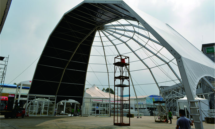 我司嚴格執行ISO9001的質量管理體系,確保不良產品的最小化及客戶滿意度的最大化。我們的的主要產品包括可移動的模塊化鋁合金支架篷房,有不同風格的篷房及裝飾可供選擇,篷房跨度從3米到60米。此外,還包括錐頂篷房和吊頂篷房,以及篷房配件,如照明燈具、地板、空調、桌椅及其它用于篷房內部的家具。篷房可廣泛應用于大小型活動、婚慶、展會、體育、酒店、航空和工業等其它領域。篷房框架結構為高強度鋁合金6061/T6型材,篷布為防水、阻燃的雙面PVC涂層聚酯纖維布,主體結構風載荷不少于100Km/h。