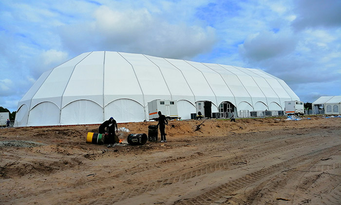 速派篷房是目前國內比較大型的篷房生產廠家,我們的篷房夸度可按要求規模量身定制。大型多功能篷房,可應用體育賽事、娛樂場所、臨時醫療、臨時辦公等各種各樣的場合,而且搭建方便,可回收再利用,是既環保又經濟的優秀產品。所謂篷房,顧名思義篷房在規模上可以媲美固定建筑。篷房的面積可以小到幾平米,大到幾萬平米,理論上甚至可以無限延展。篷房內部沒有支柱,空間100%利用。