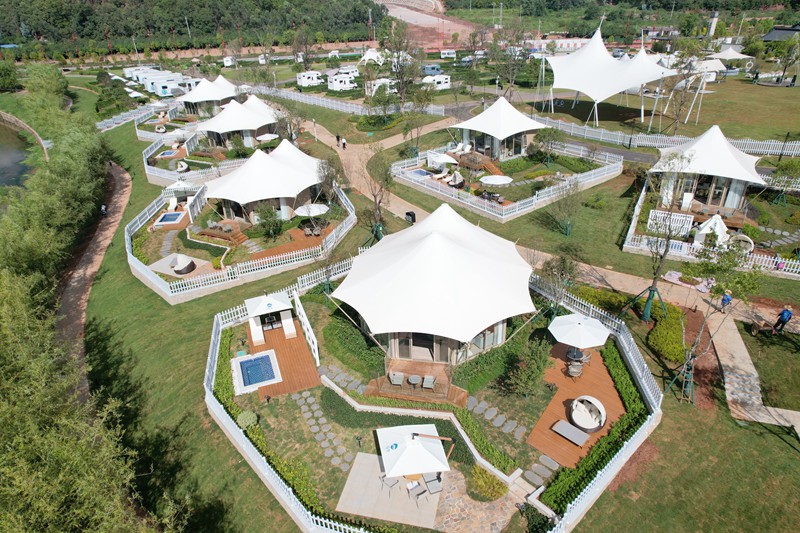 作為最新款酒店式帳篷,不管是材質對比PCV布的要耐用,外觀也更有特色,入住體驗好,適合打造成網紅款來運營,可以為景區吸引大量人氣。