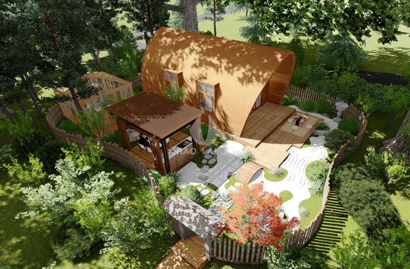船屋設計最大的特點是外觀融于自然,內部簡單樸素,遵循有所為,有所不為原則,保證景觀的合理性、舒適性,結合周邊環境,以船屋的形式還原村野生活。